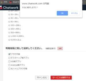 チャットワークからの退会方法ですが、公式の「解約手続きページ」から手続きを行います。