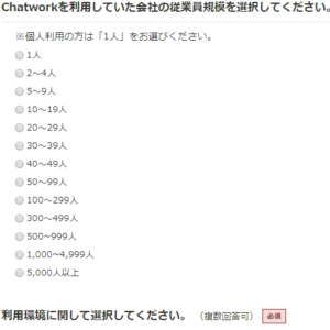 会社業種、会社規模などを選択します。利用環境は自分が利用していたのがブラウザ版かアプリ版かを選択します。