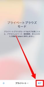 プライベートブラウズモードを使用している場合は、機能をオフにしましょう。