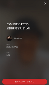 ライブキャストの履歴に配信日と配信時間が記録されるのみであり、現時点でライブキャスト配信については見逃し配信などのアーカイブ機能が無くリアルタイムで視聴するほかないという状況です。