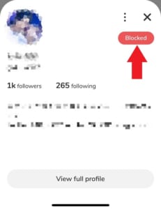 相手のプロフィール画面に赤いボタンでBlockedと表示されていればブロックができています。