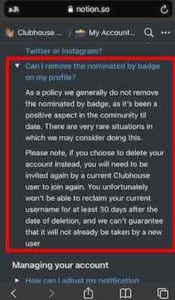 代わりにもし、あなたのアカウントを削除することを選択した場合、再度参加するためにはもう1度Clubhouseユーザーから招待してもらう必要があるので注意してください。残念ながら、削除日から少なくとも30日間は現在のユーザー名を取り戻すことができません。その間に新しいユーザーが(あなたが利用している現在のユーザー名を)まだ使用していないことを保証することはできません。