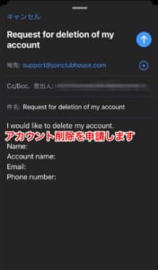 ここで届いた運営のアドレス(support@joinclubhouse.com)宛にアカウント削除の申請を送りましょう。