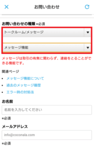 後はどういった問題が発生しているか、ココナラに登録しているメールアドレスなど必要事項を記入して送信するをタップしましょう。