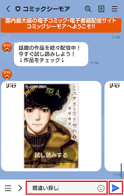 コミックシーモアのLINE公式アカウントを開いたら、トークを押してください。