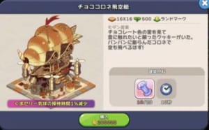 チョココロネ飛空挺 | くまゼリー気球の探検時間1%減少 | ・オーロラ柱20個 ・200000コイン |