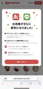 またLINEアカウントとの連携を行わなかった場合でも、別のタイミングで出前館のサイトを開くと再度確認のポップアップが表示されてしまうケースもあります。