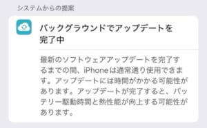 アップデート後、設定画面に「バックグラウンドでアップデートを完了中」という表示が出続け、いつまで経っても処理が終わらない問題があります。