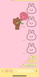 これらのキーワードをLINEメッセージに入力することで、母の日のエフェクトが画面に表示されます。