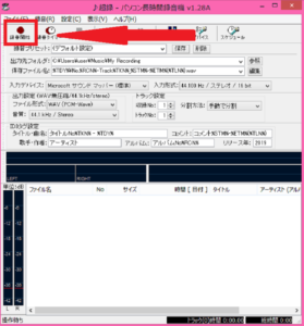 超録 パソコン長時間録音機は色々と設定の項目が表示されますが、起動後は左上の録音をクリックすればすぐに録音可能です。
