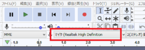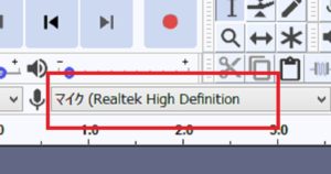 まず、Audacityを起動させ、マイクの部分をクリックしてください。
