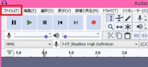 この録音方法を試すにはAudacityというソフトを2つ開く必要があるので、2つ開くために、ファイルをクリックしてください。