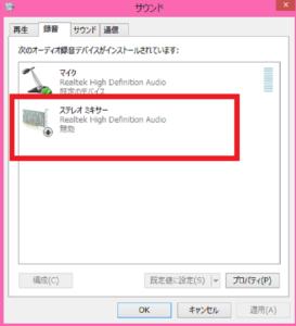 先ほど、ステレオミキサーの設定が「無効」だったのが「準備完了」になっているので、それを確認して下の「OK」をクリックしてください。