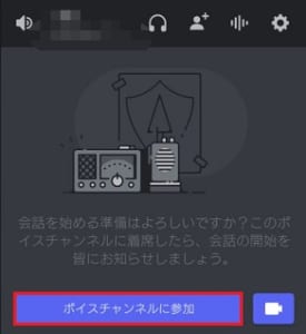 このページは、ボイスチャンネルに参加している状態なら、ボイスチャンネルの自分の名前をタップすることで表示可能です。