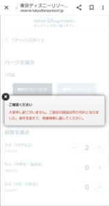 スマホ用URL:東京ディズニーリゾートチケット購入画面