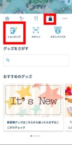 アプリを開き、ディズニーランドもしくはシーをタップします。バッグ⇒ショッピングの順番でタップします。