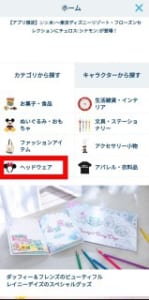 カテゴリからヘッドウェアをタップします。帽子・カチューシャ・ファンキャップをタップしてください。