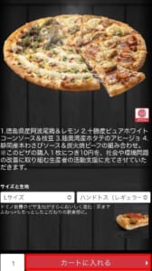 注文したいピザの詳しく見るをタップして、カートに入れるをタップしてください。