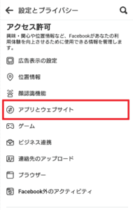 身に覚えのないアプリとの連携や診断・占いとの連携をチェックするには、メニューアイコンから設定とプライバシーを選択してください。