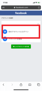 別のアカウントにログインという項目が出てくるのでタップすれば完了です。