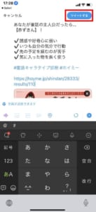 自動的にTwitterの投稿画面に移動するので、こちらでツイートするをタップすれば完了です。