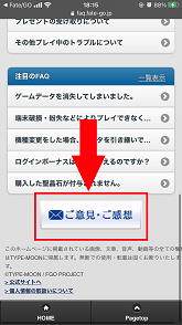 お問い合わせ画面にジャンプしたらページ下部のご意見・ご感想をタップ。