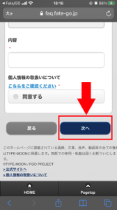 全ての項目を入力し終わったらページ下部の次へをタップ。