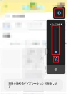 マナーモード(バイブレーション通知)にした状態でFIMOのシャッター音を消したい場合は、デバイスの音量バーを一番下まで下げるかミュートにし、バイブレーション設定に変更しましょう。