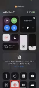 下部に表示されている画面録画マークをタップして赤くなった状態を確認したら、画面を下から上にスワイプしてPokekara(ポケカラ)アプリに戻ります。