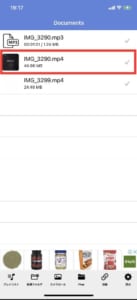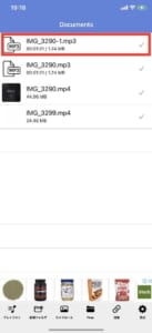 結合するファイルを選択できるので、音源として使用しているファイルの左側のチェックボックスをタップします。