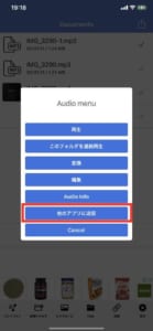 Audio menuが表示されるので、他のアプリに送信をクリックします。