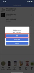 先ほど保存した動画を長押しするとVideo menuが表示されるので、変換をタップします。