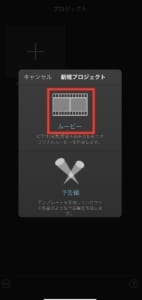 iMovieを起動してプロジェクトを作成→ムービーをタップします。