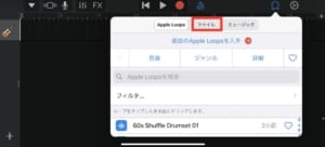 複数の音源を確認できる画面が表示されるので、画面上部の右から二つ目の丸いアイコンをタップします。