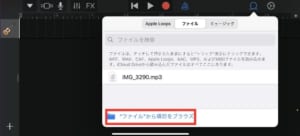 先ほどの画面に選択した音源が表示されるので、選択した音源を長押ししてドラッグアンドドロップでギターが表示されている行にコピーします。