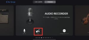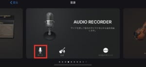 GarageBandアプリを起動してAUDIO RECORDERを表示させます。