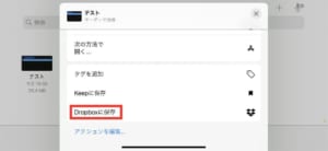 共有先のファイルが選択できるのでDropboxに保存をタップします。