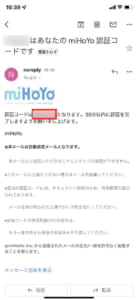 認証コード獲得をタップして、「miHoYoアカウントを作成しておく」の章でご紹介した要領でメールアドレス宛に送信された認証コードをコピーします。