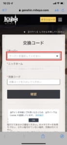 手順としてはWebの交換コードサイトを開いて、サーバーを選択してくださいをタップします。