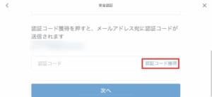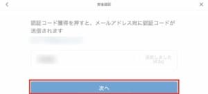 認証コードの横に「送信しました」と表示されれば、先ほど入力したメールアドレス宛に認証コードが届きます。