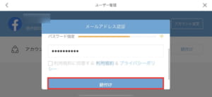 パスワードの入力と規約への合意を行い、紐付けをタップしてください。