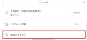 ユーザー管理画面が表示されるので、下にスクロールして関連アカウントをタップします。