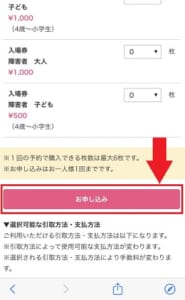 購入チケット枚数を指定したら、お申込みをタップして完了です。