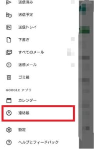 まずGmailのメニューアイコンを選択し連絡帳をタップしてください。