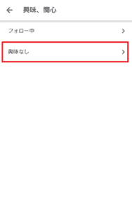 チャンネル、興味/関心を選択し興味なしをタップします。