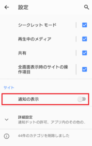 通知を押して、「サイト」の項目にある通知の表示をオフにします。