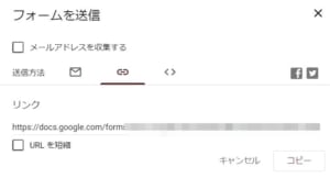 この後、リンクタブからリンクの設定やリンクのコピーなどが行え、この画面に表示されているリンクをウェブサイトやSNSなどに貼り付けて共有することでアンケートに参加して貰うことが可能です。