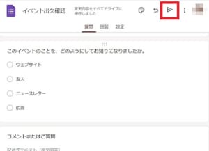 アンケートが作成出来たら送信アイコンを選択します。