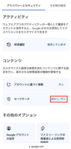 アカウントに基づく情報の設定をオフにしたら、セーフサーチの設定もオフにしましょう。