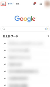 手順としてはGoogle検索を開いて左上の三をタップします。